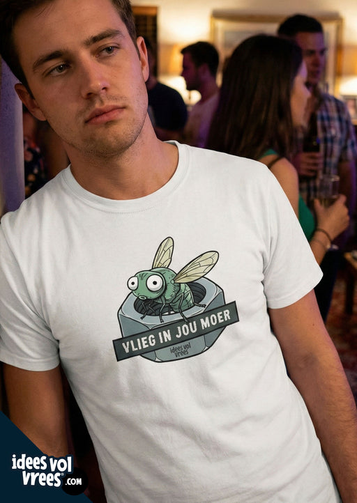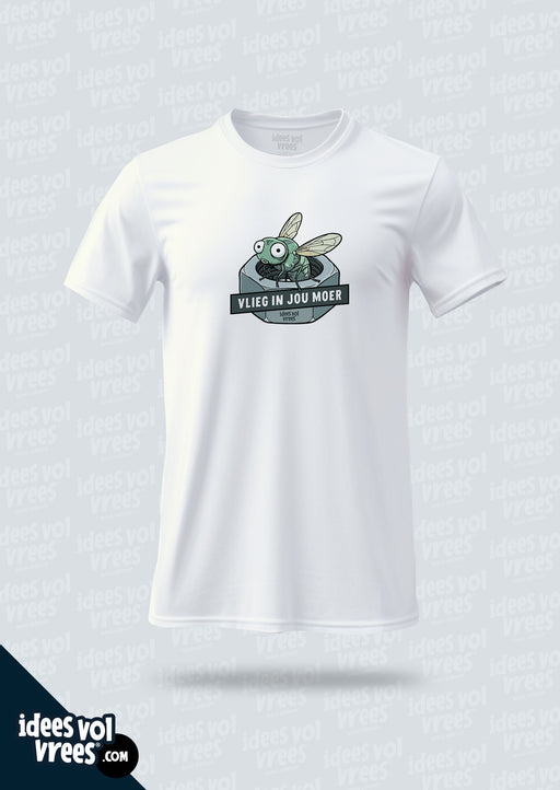 Idees Vol Vrees®Bzzzz... Kyk! Daar's 'n vlieg... in jou moer. Ons t-hemde is uitstekende gehalte. En die 100% katoen sorg dat dit so sag is soos 'n skaap se boude!...