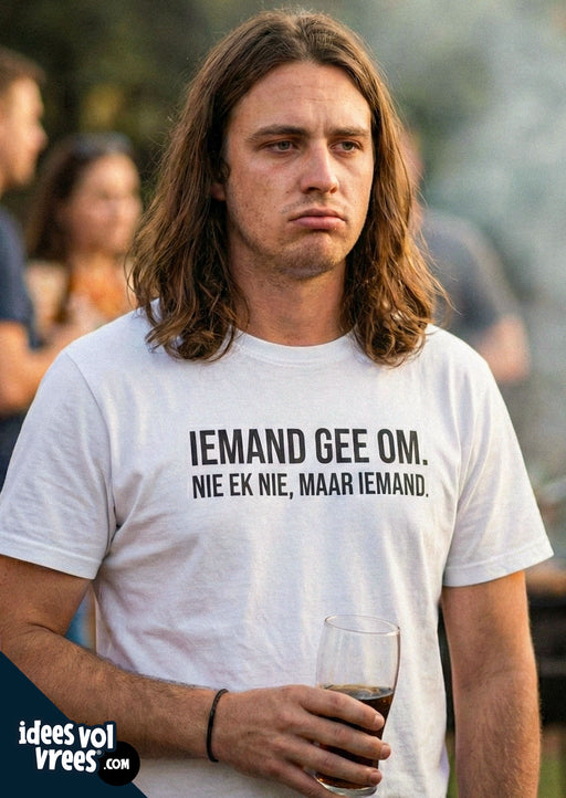 Idees Vol Vrees®Iemand gee om. Nie ek nie... maar iemand. Ons t-hemde is uitstekende gehalte. En die 100% katoen sorg dat dit so sag is soos 'n skaap se boude!** ...
